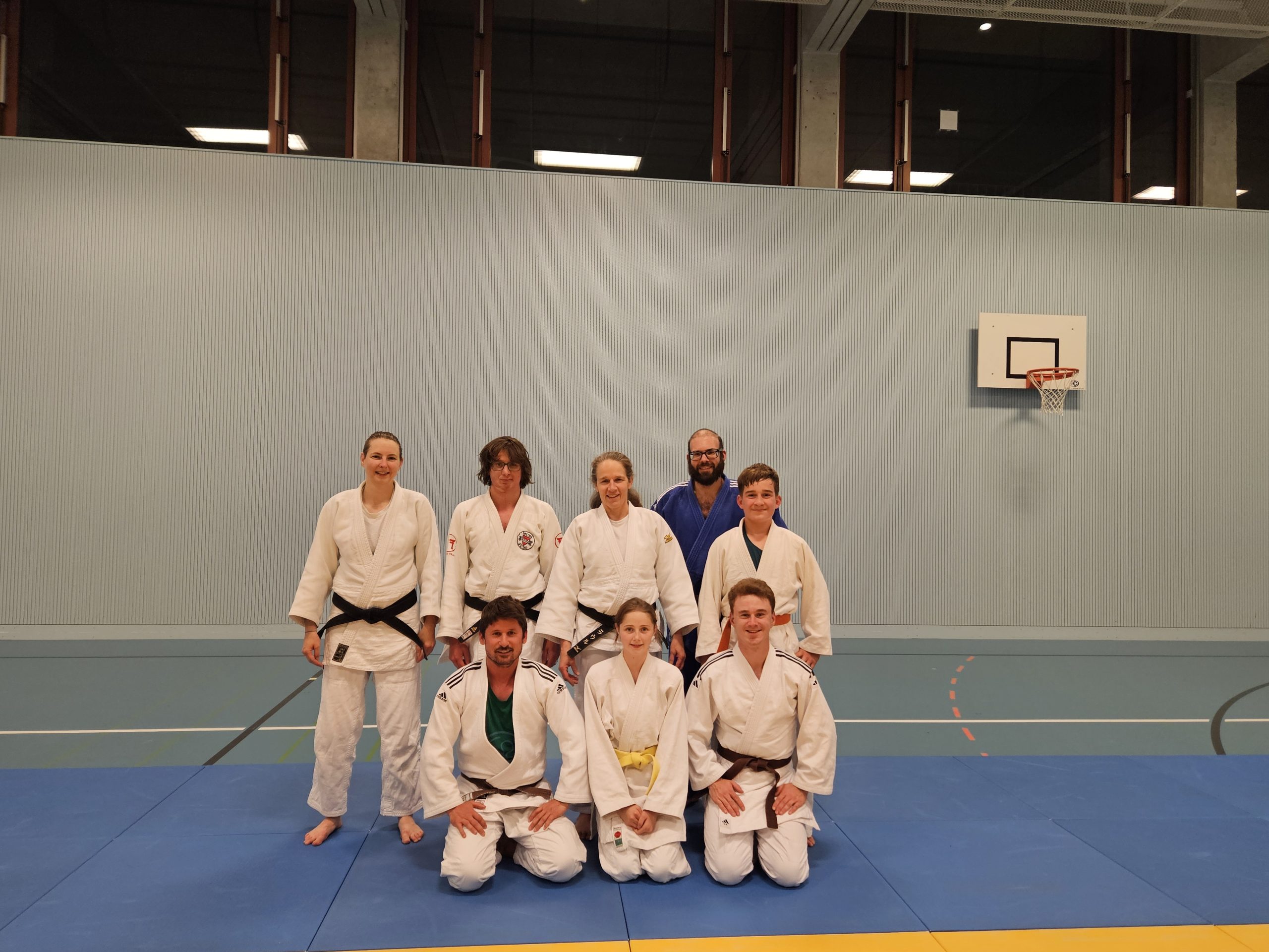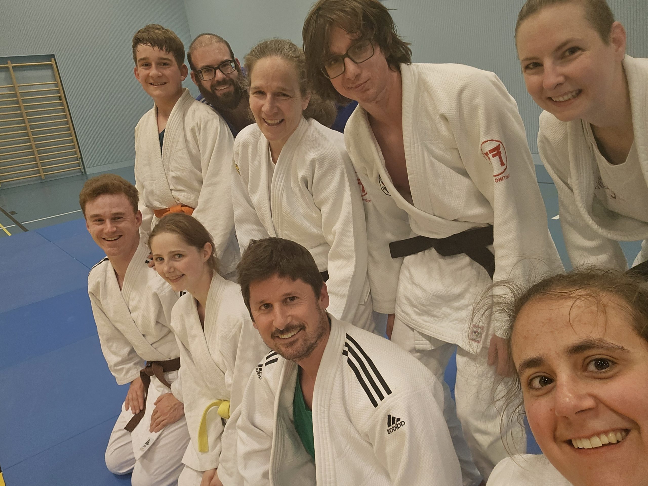 Nach einer kurzen Pause für unsere Gasttrainerin startete das zweite Training mit acht jugendlichen und erwachsenen Judokas. Auch hier lag der Fokus auf einer Bodentechnik, die konzentriert und mit viel Engagement geübt wurde. So intensiv, dass die geplanten 90 Minuten unbemerkt auf zwei Stunden verlängert wurden! Nach dem Aufräumen des Tatamis klang der Abend auch für die Erwachsenen bei Kuchen und Getränken gemütlich aus.